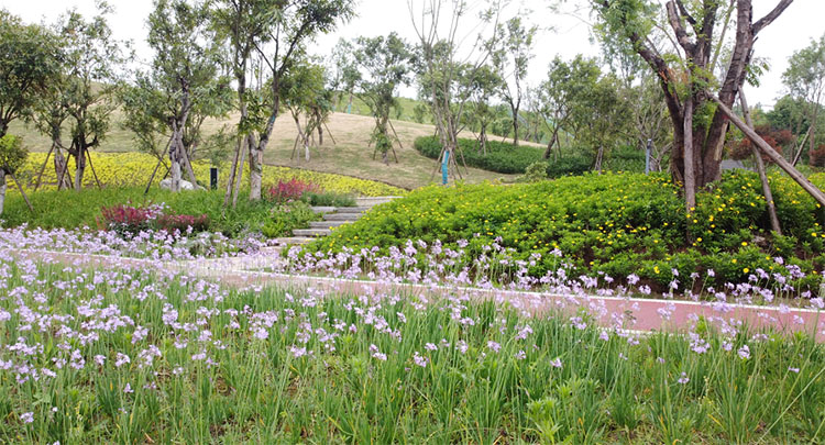 興綠園林公司按照海綿城市建設(shè)要求,將海綿城市建設(shè)作為一項(xiàng)長(zhǎng)期發(fā)展規(guī)劃融入到園林綠化建設(shè)過(guò)程中,積極推廣踐行海綿城市設(shè)計(jì)及建設(shè)。2021年,興綠園林公司實(shí)施的龍澗溪公園(高鐵站片區(qū)段)工程項(xiàng)目,將水生態(tài)治理和場(chǎng)地內(nèi)海綿系統(tǒng)建設(shè)相結(jié)合,利用原有的水系、山體以濕塘、雨水濕地、生態(tài)浮島、生態(tài)植草溝、植物緩沖帶透水鋪裝及蓄水模塊等構(gòu)建公園內(nèi)部水系統(tǒng),結(jié)合城市管網(wǎng)灰色基礎(chǔ)設(shè)施及超標(biāo)雨水排放系統(tǒng),利用新材料、微地形改造、植物生態(tài)生境,形成滲、滯、蓄、凈、用、排的水系循環(huán),大大減輕周邊城市管網(wǎng)排水壓力。2021年8月投入使用后,被瀘州海綿辦作為瀘州海綿城市公園建設(shè)典范,住建部、山西省等省部級(jí)單位、省內(nèi)各地市州單位先后前來(lái)參觀交流,得到了各界領(lǐng)導(dǎo)的高度認(rèn)可,市民對(duì)海綿城市建設(shè)的知曉度、滿(mǎn)意度評(píng)價(jià)也越來(lái)越高。