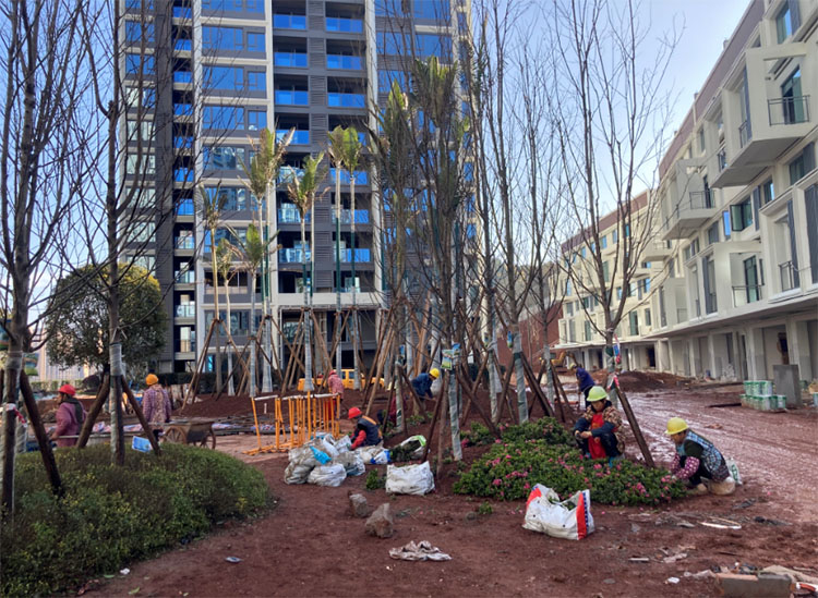 四月的宜賓,春暖花開。佳樂?悠南山項(xiàng)目現(xiàn)場機(jī)器轟鳴奏響發(fā)展“春之曲”,鋪裝、水電安裝、回填碎石、挖坑換土、樹木栽植、澆水以及涂抹愈傷膏等有條不紊地進(jìn)行,機(jī)械、人力交織配合,施工現(xiàn)場一派忙碌景象。在項(xiàng)目醒目位置,掛著工期作戰(zhàn)圖,每項(xiàng)施工任務(wù)都細(xì)化到了天、明確到了人,確保項(xiàng)目建設(shè)天天有新變化、周周有新進(jìn)展。