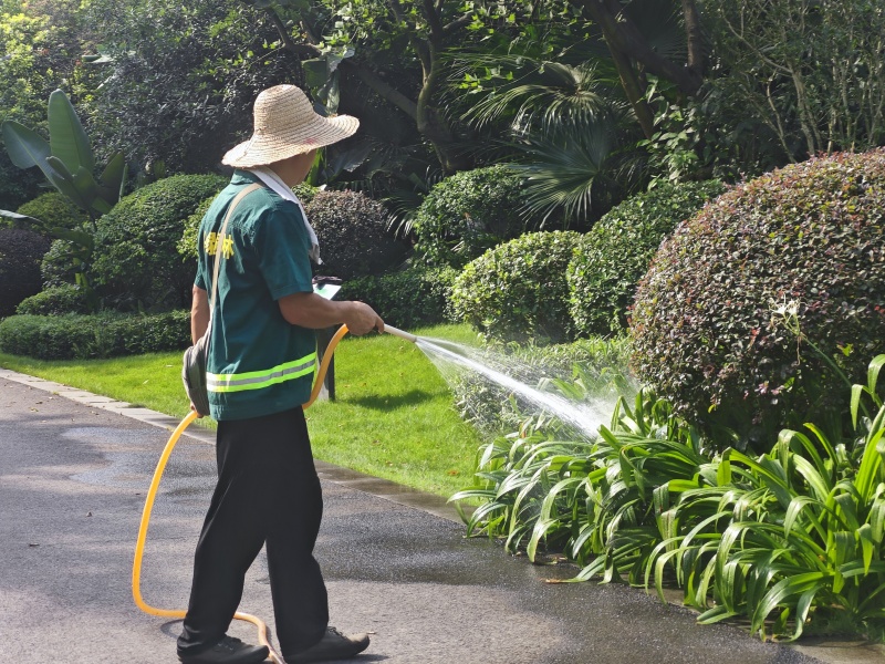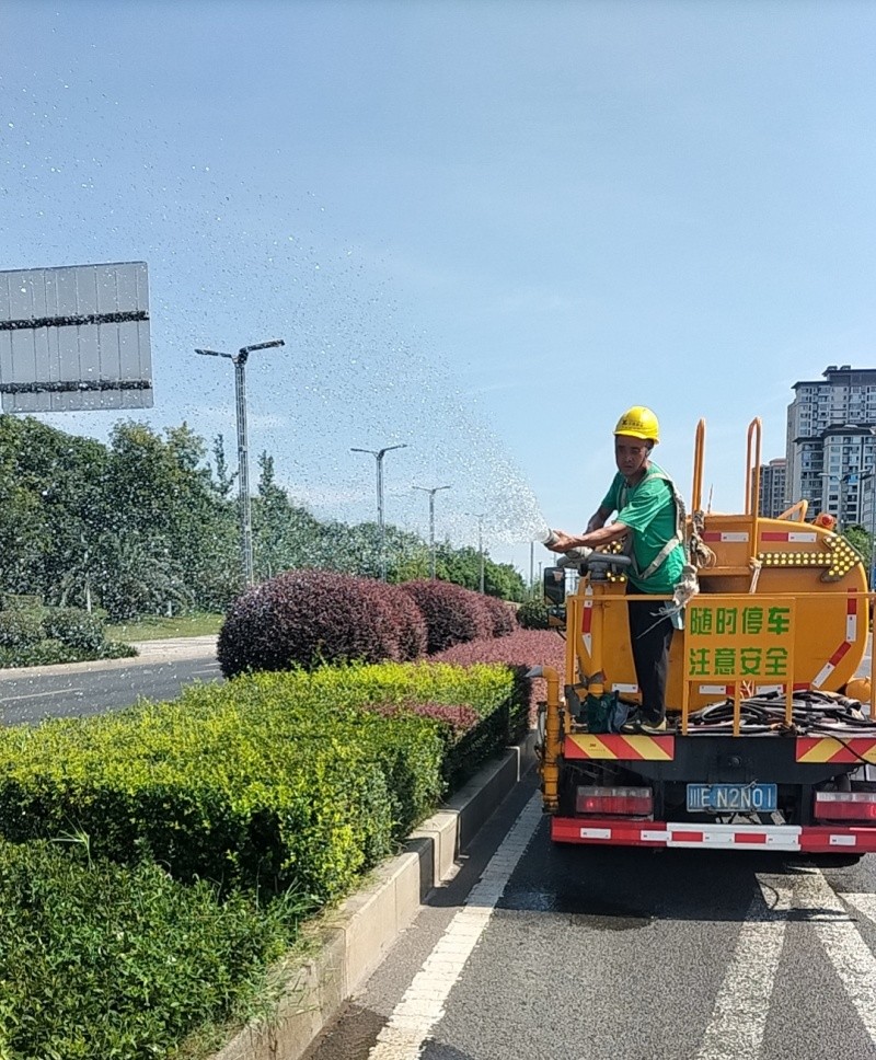 公司根據(jù)綠化植物耐旱程度不同,區(qū)別澆灌,合理調(diào)整澆水時(shí)段,避開中午高溫,采用錯(cuò)峰澆水方式,在清晨、傍晚和夜間開展作業(yè),同時(shí)加強(qiáng)夜間澆水力度,延長(zhǎng)澆水時(shí)間,做到人跟車走,輪換作業(yè),人歇車不停。
